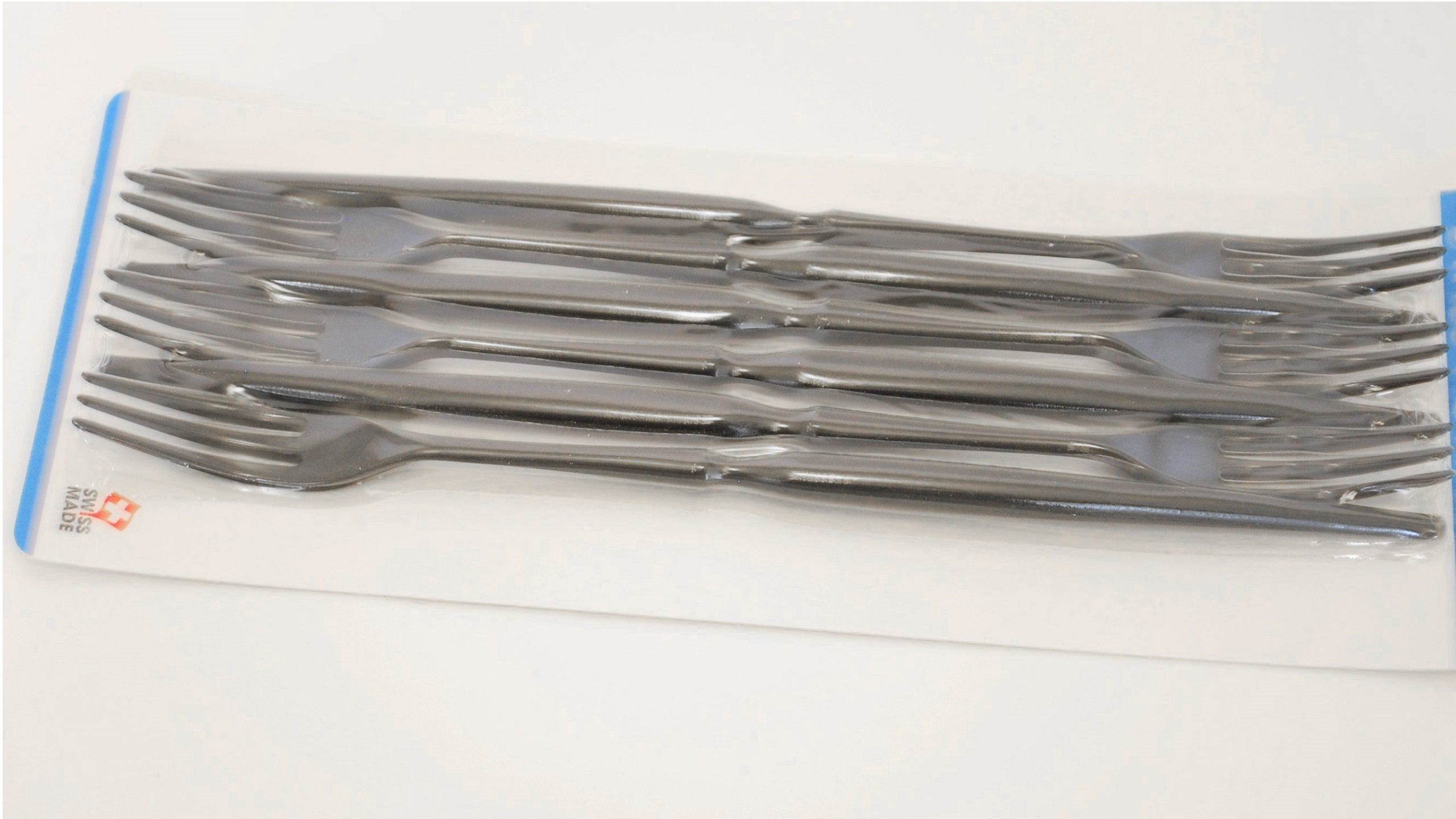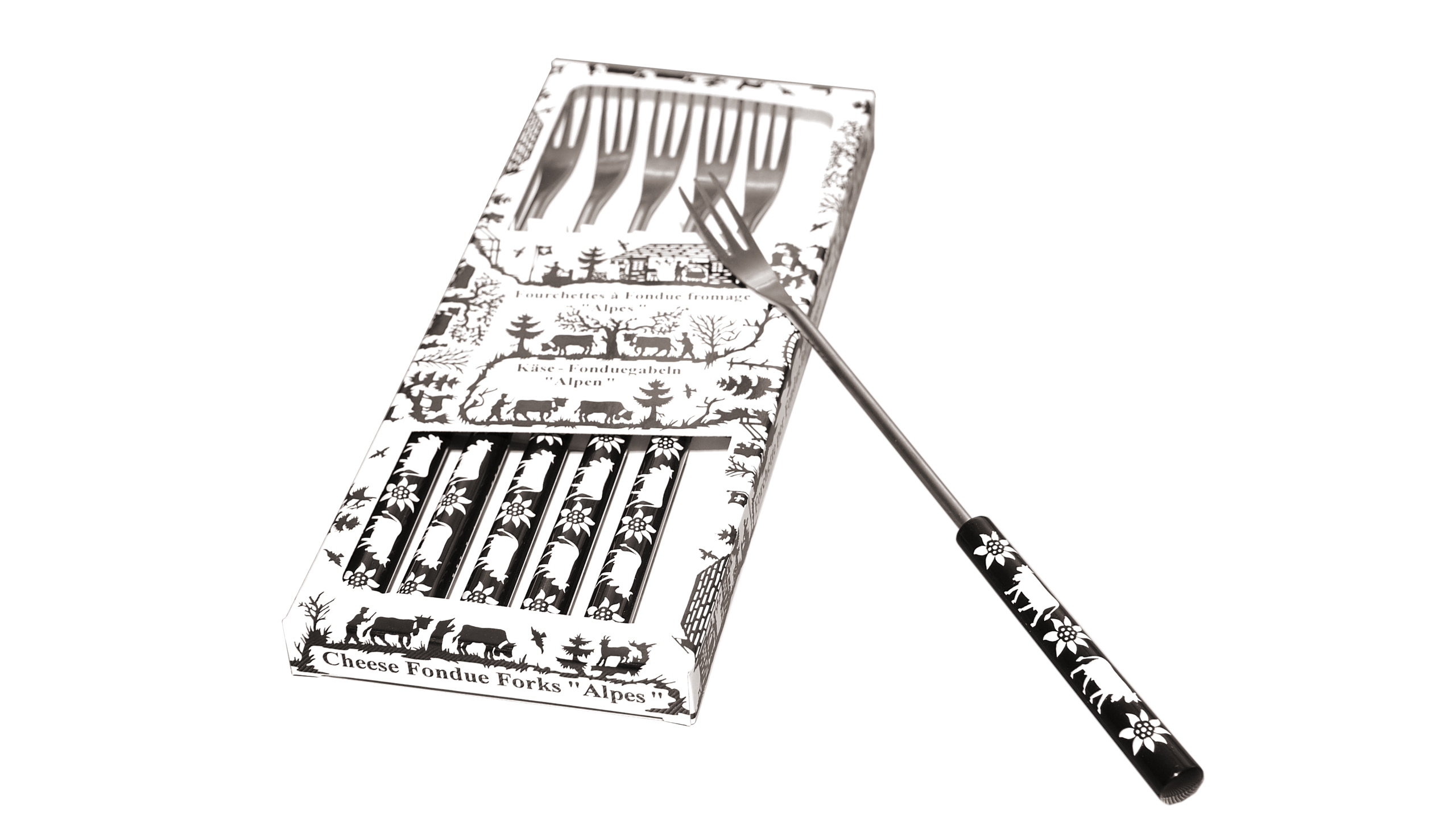 Fondue Gabeln aus Chromnickelstahl, Griff aus schwarzem Kunststoff, Set à 6 Stück, Länge 26 cm