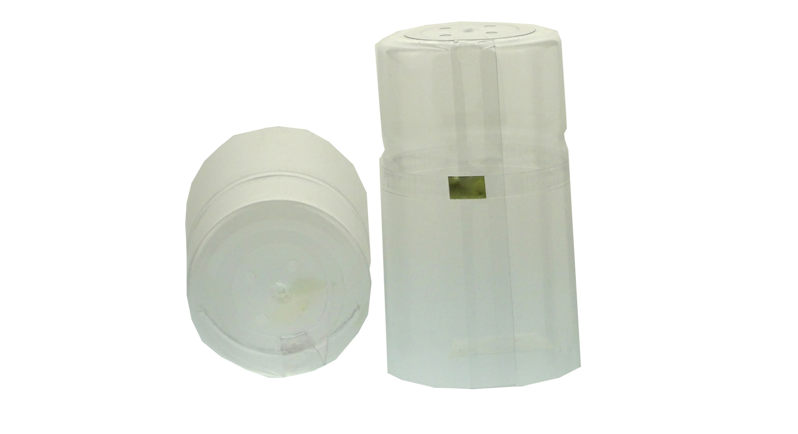 Miniflasche aus transparentem Weissglas mit Kropfhals, Drehverschluss, Inhalt 20 ml