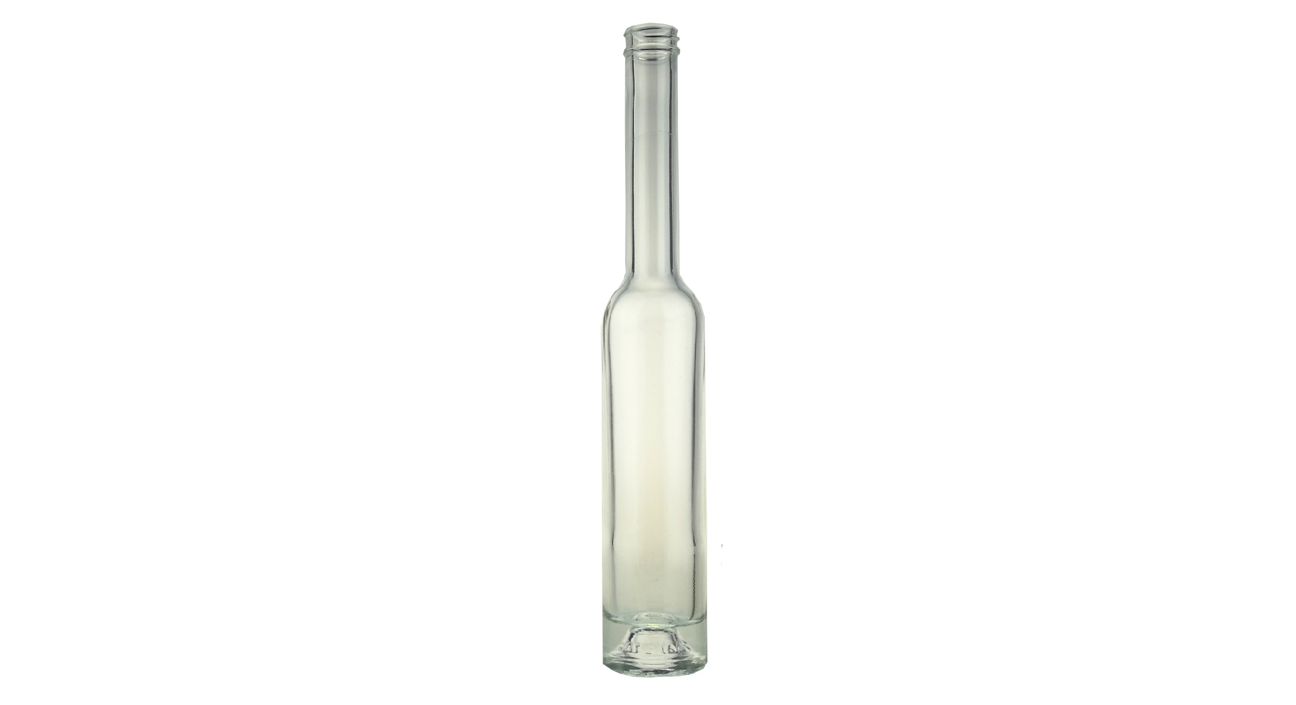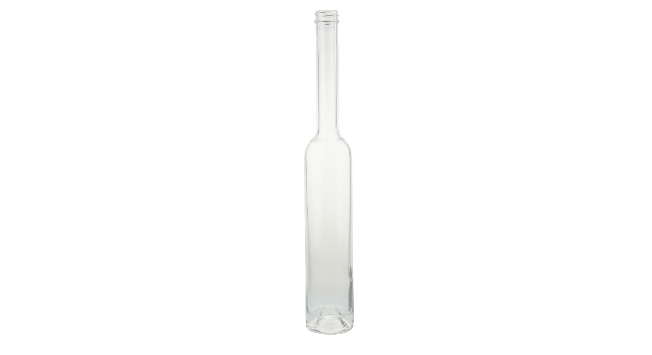 Platinflasche aus transparentem Weissglas, Drehverschluss Ø 28 mm, geeignet für Spirituosen, Inhalt 200 ml, Höhe 307 mm, Ø 51 mm, 500 g