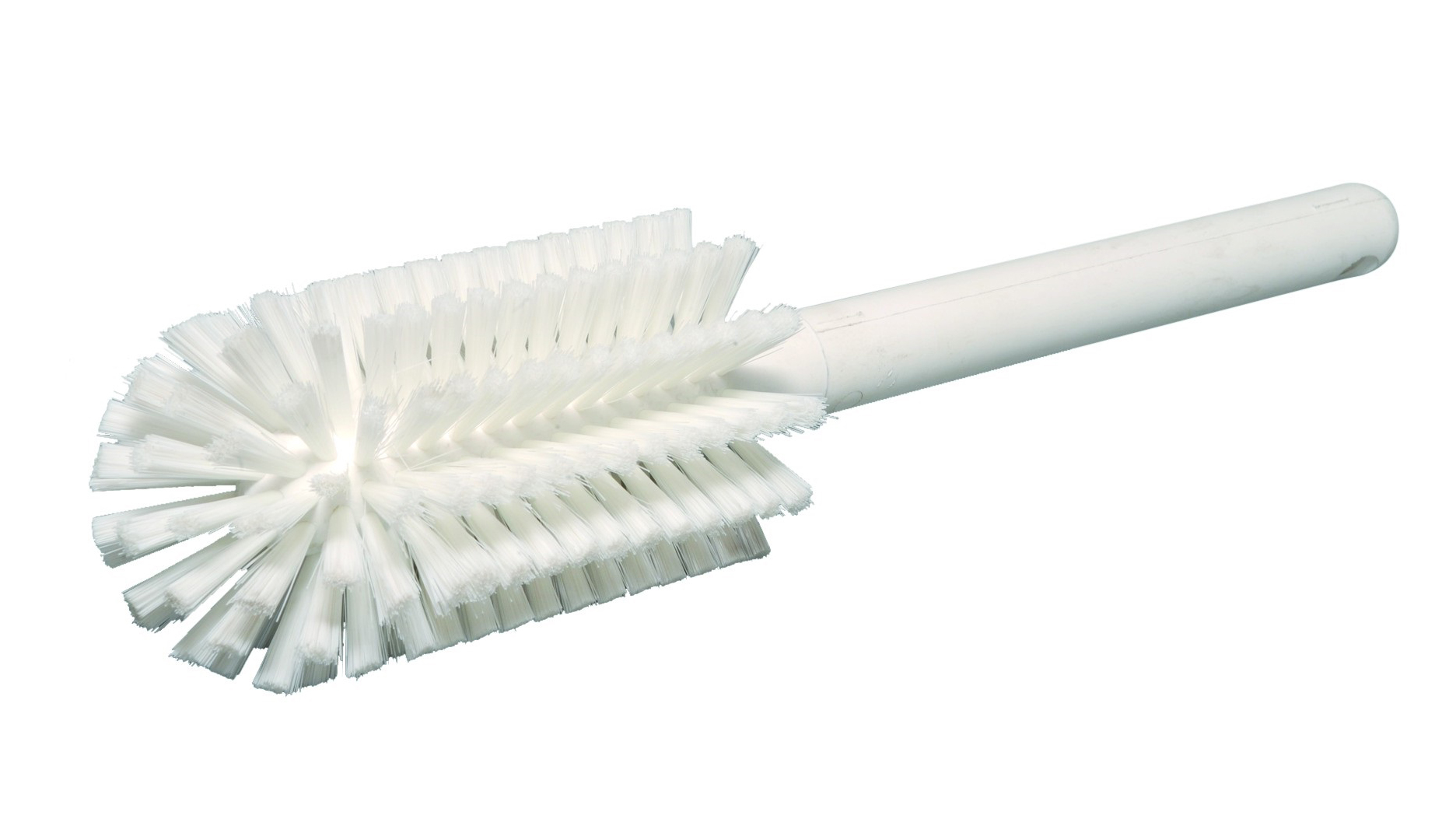 Weisse Flaschenbürste mit Kunststoff-Griff, Borsten aus Nylon, speziell für Enghalsflaschen.