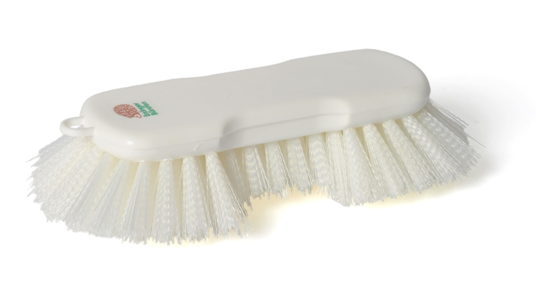 Handbürste 222N mit Kunststoffgriff und weissen Nylon-Borsten, hitzebeständig bis 90°C.