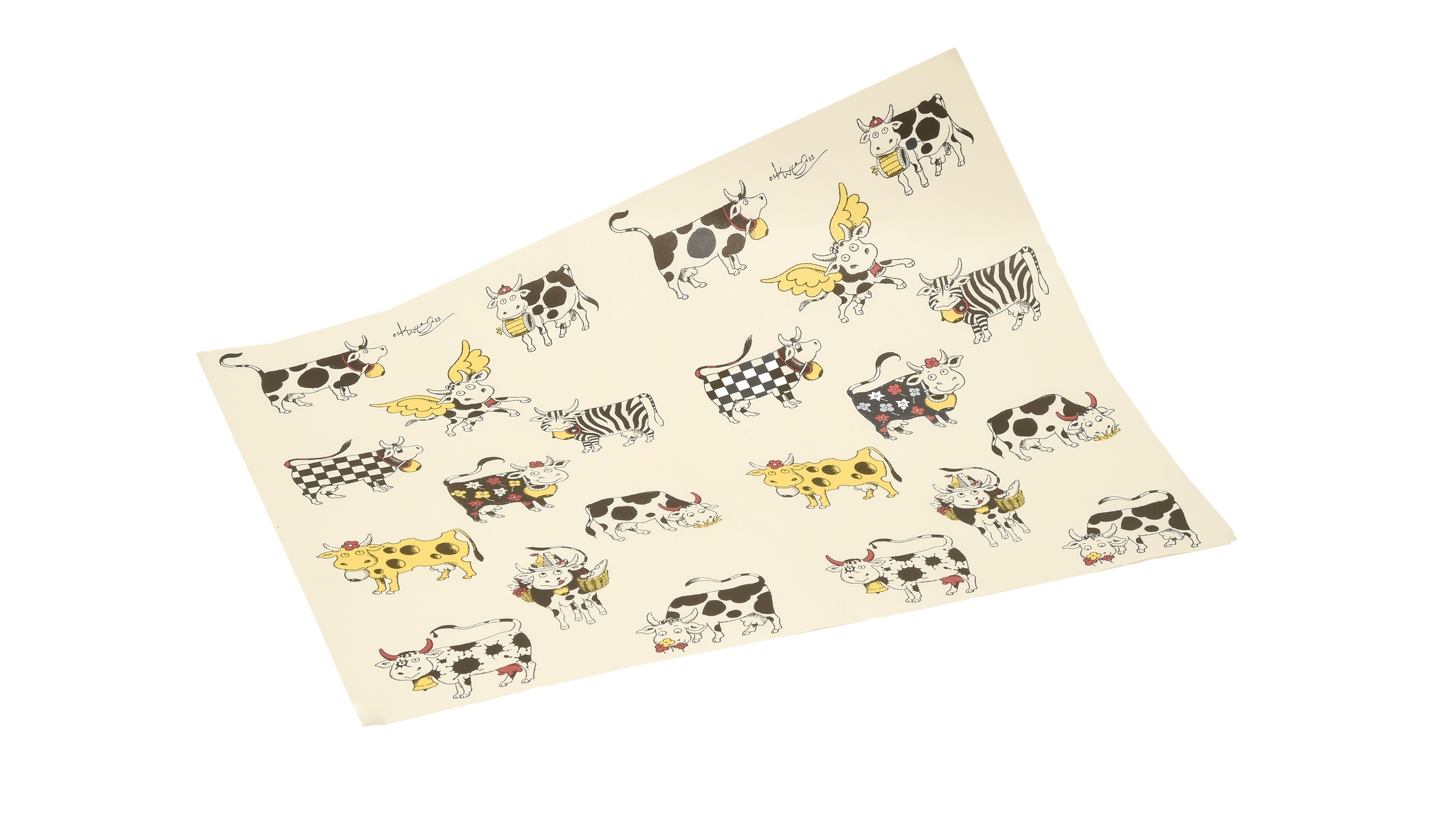 Käsepapier Fresco weiss 40g/m2 mit PE Beschichtung, farbig bedruckt mit Sujet Kuh, Grösse 25 x 37 cm