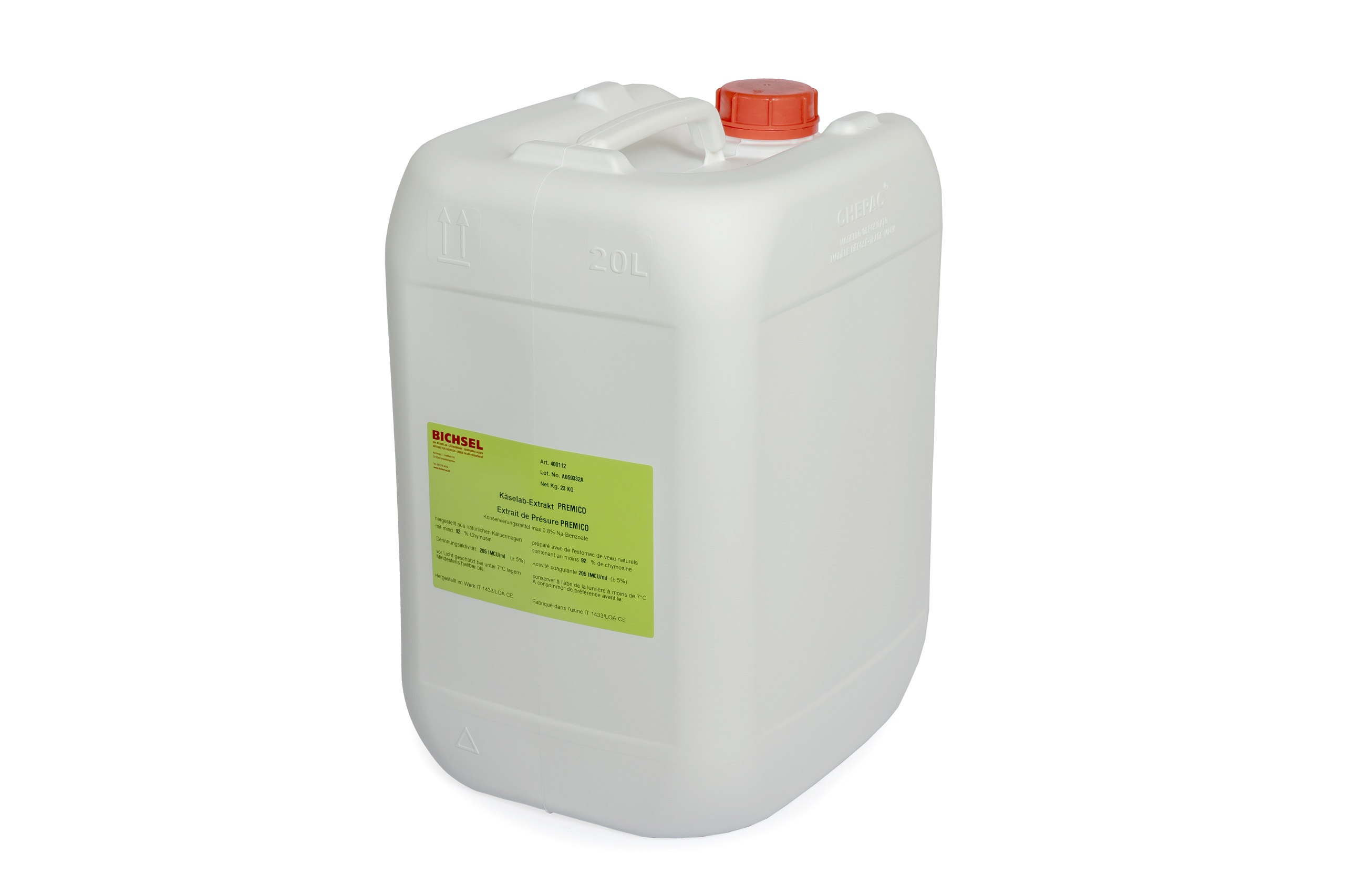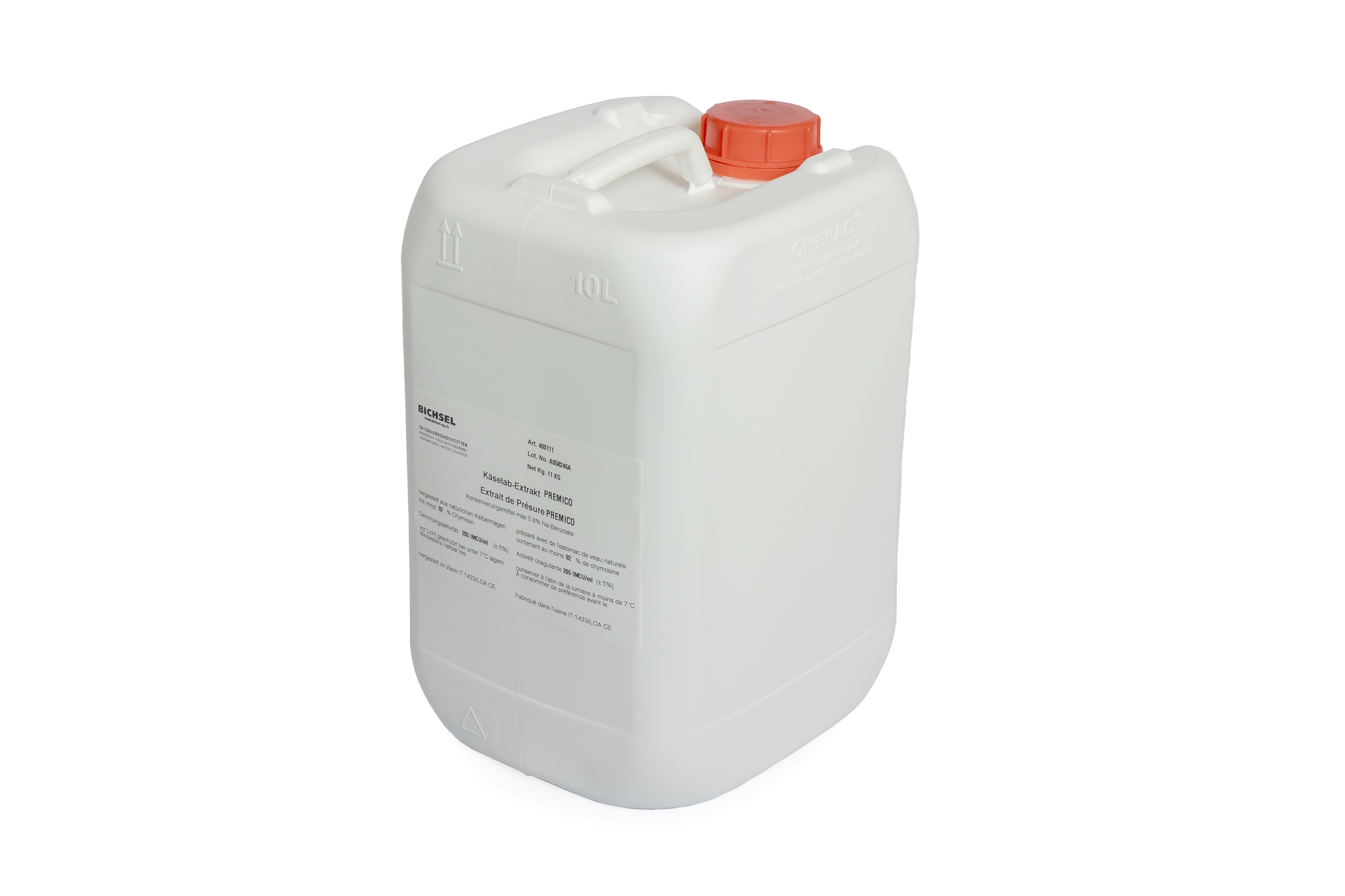 Flüssiges Natur-Käse-Lab Extrakt Bichsel / PREMICO, aus auserlesenen Kälbermagen, Chymosin/Pepsin 92:8 %, IMCU: 205.