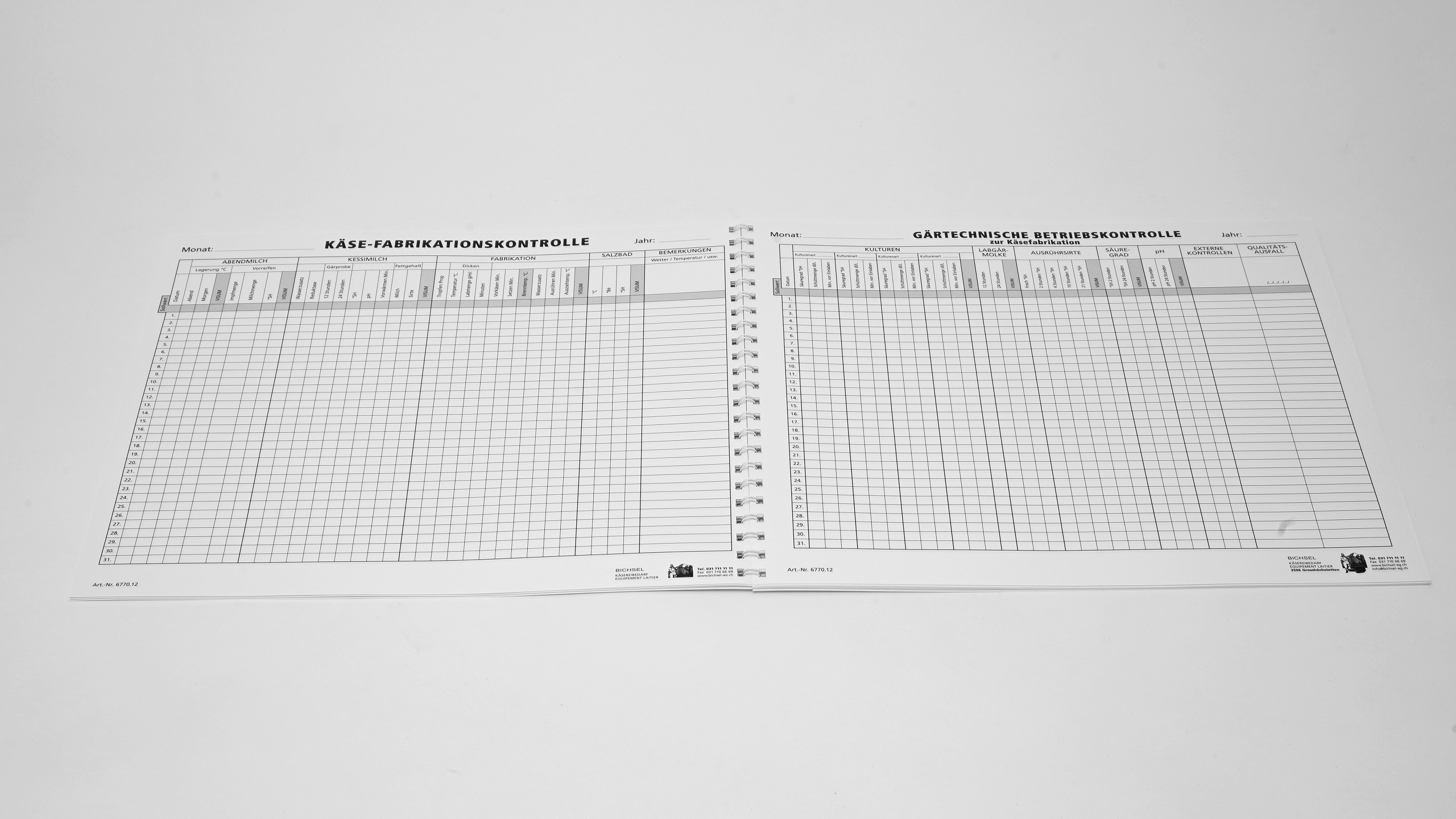 Ringheft mit je 12 Fabrikations- und Gärtechnischen - Kontrollblättern