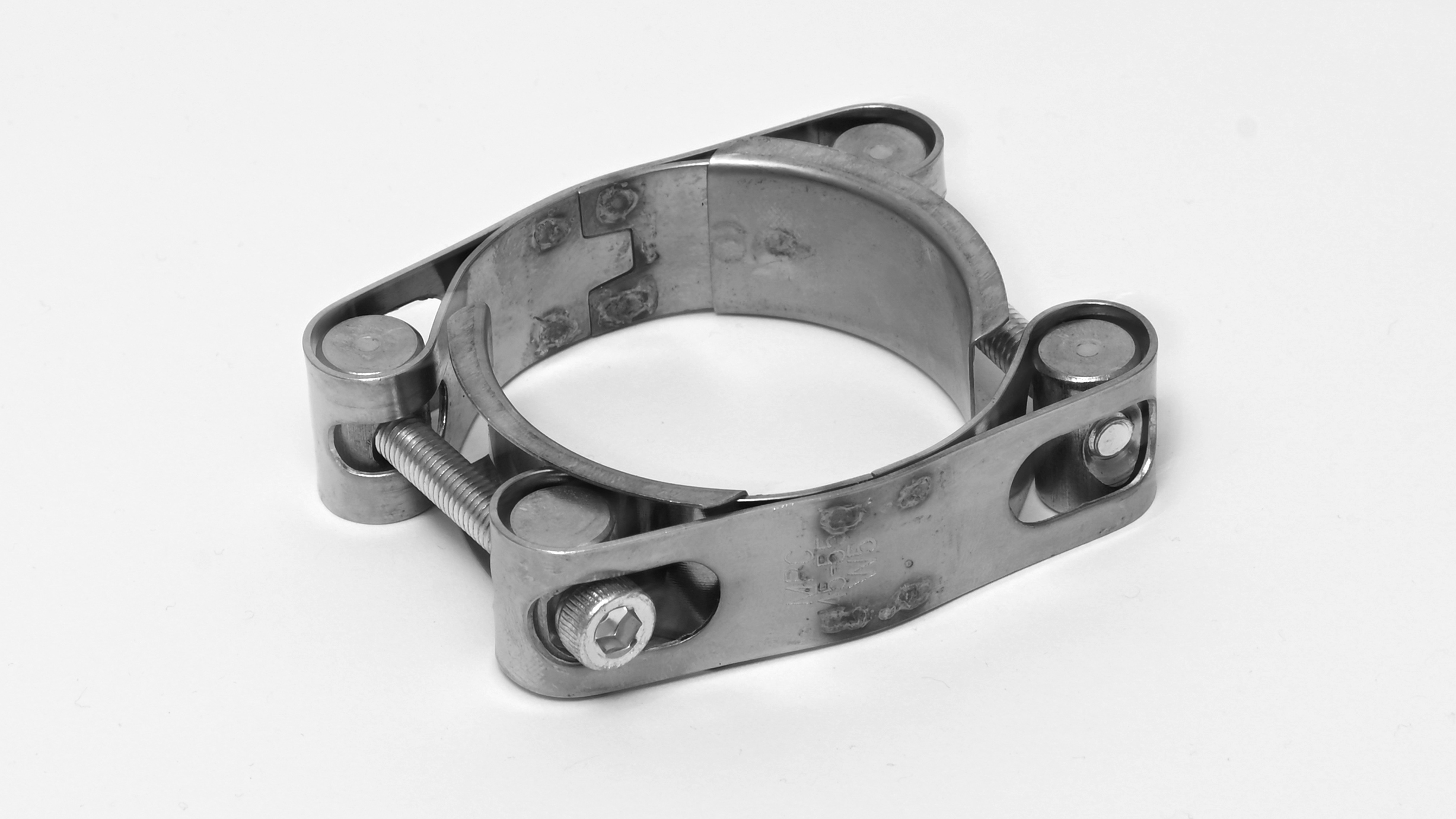 Schlauchzwinge aus Chromnickelstahl mit Doppelschraube, Ø 55 - 65 mm