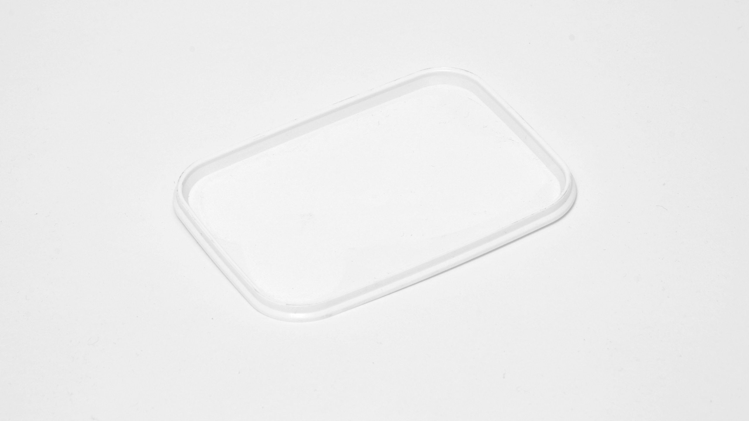 DECA-Box aus weissem Kunststoff PP, mit Erstöffnungs-Garantieverschluss, ideal für Fonduemischungen, Saucen, Kräuterbutter, Quarks, Jogurts und Cremen, Grösse 126 x 192 mm, Höhe 73 mm, Volumen 1.2 Liter