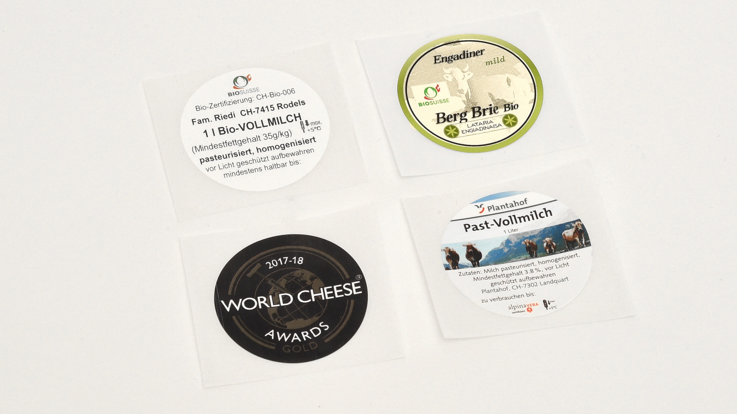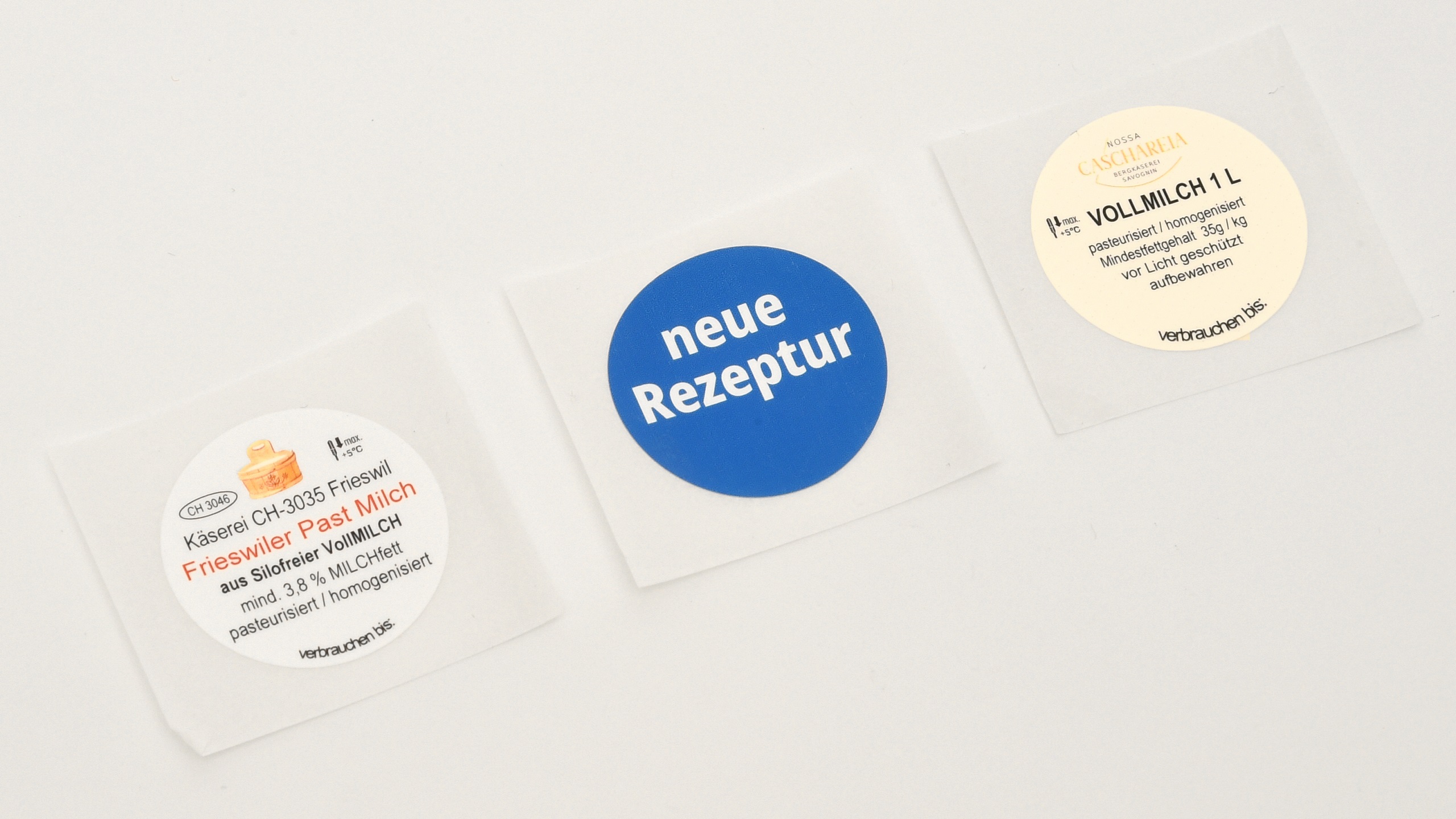 Selbstklebe-Etiketten Kiaro aus weisser PP-Folie, semiglänzend, mit Aufdruck nach Wunsch, Ø 48 mm